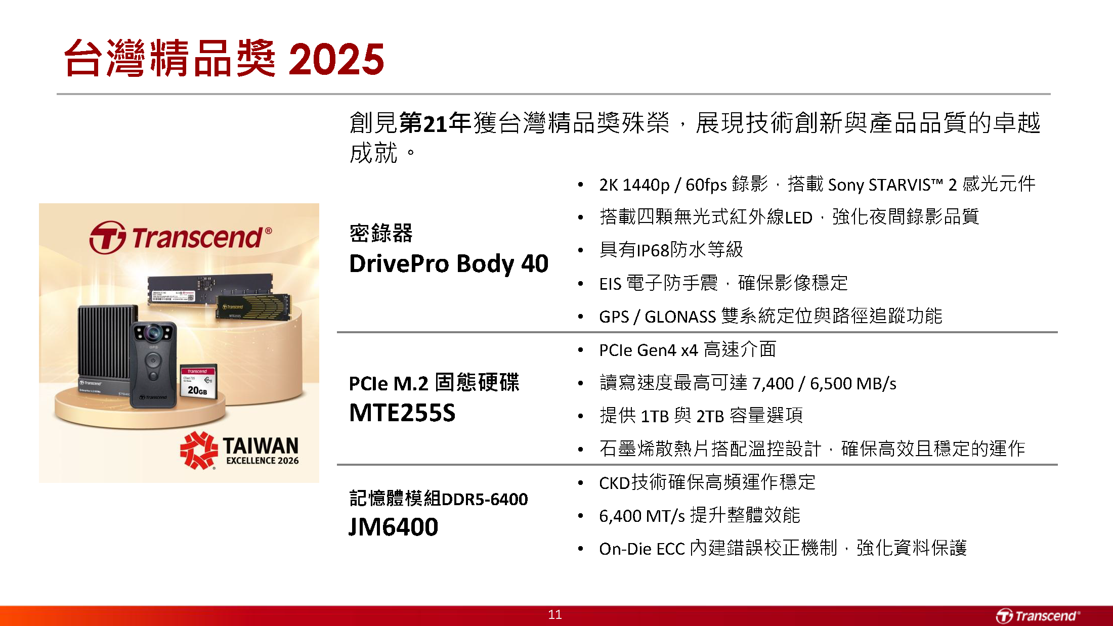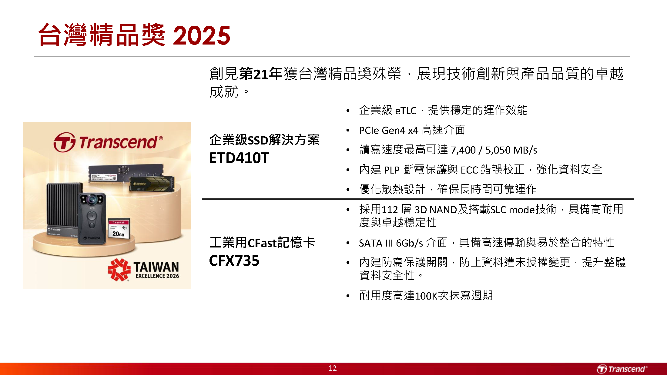 创见第21年获台湾精品奖殊荣·展现技术创新与产品品质的卓越成就。